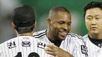 3일 잠실구장에서 벌어진 LG 트윈스와 삼성 라이온즈의 경기 LG의 6회말 공격 무사 1,3루에서 최동수의 중견수 희생 플라이로 3루 주자 클리어가 홈을 밟아 역전에 성공한 뒤 동료들의 환영을 받고 있다. 클리어는 1회 선제 타점에