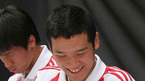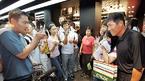 3일 오후 서울 명동의 아디다스 코리아 직영점 오픈 행사에 많은 축구인과 연예인이 참가, 성황을 이뤘다. 오프닝 이벤트로 벌어진 FC 서울 선수들의 사인회에서 김승용이 팬이 전달한 메시지를 받고 웃고 있다./손용호 기자 spjj@