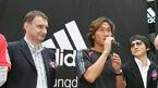 3일 오후 서울 명동의 아디다스 코리아 직영점 오픈 행사에 많은 축구인과 연예인이 참가, 성황을 이뤘다. 영화배우 강동원과 볼프강 벤트하이머 아디다스 코리아 대표이사가 휘장이 제거되자 박수를 치고 있다./손용호 기자 spj