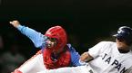 6일 인천 문학구장에서 벌어진 제6회 아시아청소년선수권 대회 한국과 일본의 결승전 한국이 2-1로 앞서던 4회말 2사 3루서 일본의 3루주자 히라타가 후나비키 타석 때 홈스틸을 시도하다 이재원 포수에게 태그아웃 당하고 있다.