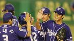 7일 대구구장에서 펼쳐진 삼성과 정규시즌 최종전을 7-1 승리로 이끈 SK 와이번스 선수들이 경기후 마운드 근처에 모여 하이파이브를 나누고 있다. SK는 이날 승리로 올시즌 삼성 상대 9승2무7패의 우위를 지켰다. /대구=손용호기