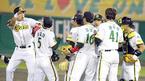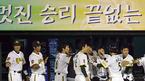 8일 현대 유니콘스와 두산 베어스의 수원 경기서 7,8회에 터진 홈런 두 방에 힘입어 6-2로 역전승한 현대선수들이 마운드 주변에 모여 승리의 하이파이브를 나누고 있다./수원=주지영 기자 jj0jj0@osen.co.kr [Copyright ⓒ OSEN(www.osen.co.kr)