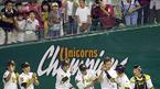 8일 현대 유니콘스와 두산 베어스의 수원 경기서 6-2로 역전승한 현대의 송지만(왼쪽 끝)이 동료들이 모여 있는 마운드로 달려 오며 펄쩍 뛰고 있다./수원=주지영 기자 jj0jj0@osen.co.kr [Copyright ⓒ OSEN(www.osen.co.kr) 무단전재 및 재배포