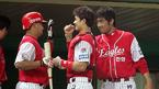 8일 문학구장에서 벌어진 SK 와이번스와 한화 이글스의 경기 한화가 5-0으로 앞서던 3회초 1사 2루에서 브리또가 좌중월 2점 홈런을 치고 조성민 등 동료들의 환영을 받고 있다./인천=손용호 기자 spjj@osen.co.kr [Copyright ⓒ OSEN(www.osen