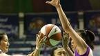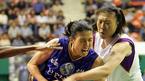 12일 서울 장충체육관에서 벌어진 신한은행배 2005 여자프로농구 여름리그 4강 플레이오프 3차전서 국민은행에 56-53으로 역전승, 2승 1패로 챔피언 결정전에 오른 신한은행의 '주부 가드' 전주원이 골 밑 돌파를 시도하다 정선민(