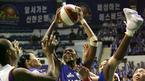 12일 서울 장충체육관에서 벌어진 신한은행배 2005 여자프로농구 여름리그 4강 플레이오프 3차전서 국민은행에 56-53으로 역전승, 2승 1패로 챔피언 결정전에 오른 신한은행의 겐트(가운데)가 리바운드를 잡으면서 몸이 뒤로 젖혀