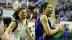 12일 서울 장충체육관에서 벌어진 신한은행배 2005 여자프로농구 여름리그 4강 플레이오프 최종 3차전서 국민은행의 정선민(왼쪽)과 윌리엄스가 리바운드된 볼을 서로 잡으려 하고 있다. 신한은행이 56-53으로 역전승, 챔피언 결정
