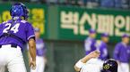 14일 두산 베어스와 SK 와이번스의 잠실 경기 두산의 7회말 2사 2루서 김동주가 3루수 앞 땅볼을 친 뒤 손에 통증으로 얼굴을 찡그리며 그라운드를 나오고 있다./잠실=주지영 기자 jj0jj0@osen.co.kr [Copyright ⓒ OSEN(www.osen.co.kr) 무단전