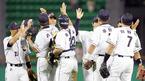 14일 두산 베어스와 SK 와이번스의 잠실 경기서 4-1로 승리, SK에 3연승을 거둔 두산 선수들이 마운드 주변에 모여 하이파이브를 나누고 있다. /잠실=주지영 기자 jj0jj0@osen.co.kr [Copyright ⓒ OSEN(www.osen.co.kr) 무단전재 및 재배포 금지]