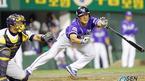 14일 두산 베어스와 SK 와이번스의 잠실 경기 SK의 4회말 1사 만루서 김태균이 스퀴즈 번트를 시도했으나 공이 바깥쪽으로 들어오자 배트를 내던지고 있다. 하지만 번트에 실패, 스타트했던 3루 주자와 2루 주자가 모두 아웃됐다./