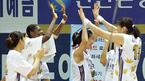 16일 안산 와동 실내체육관에서 벌어진 신한은행배 2005 여름리그 챔피언 결정전 2차전서 61-51로 승리한 신한은행 선수들이 하이파이브를 나누며 기뻐하고 있다./안산=주지영 기자 jj0jj0@osen.co.kr [Copyright ⓒ OSEN(www.osen.co.kr) 무단전