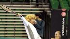 18일 올림픽 체조경기장에서 열린 비너스와 샤라포바의 원포인트 클리닉에 모 방송국의 프로그램을 촬영하기 위해 온 유재석이 샤라포바가 장난으로 서비스를 네트 바로 앞으로 넣자 대쉬했으나 헛 손질을 하고 있다. /손용호