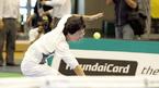 18일 올림픽 체조경기장에서 열린 샤라포바의 원포인트 클리닉에 모 방송국의 프로그램을 촬영하기 위해 온 노홍철이 샤라포바의 서브에 크게 헛 스매싱을 하고 있다. /손용호 기자 spjj@osen.co.kr [Copyright ⓒ OSEN(www.osen.co.kr) 무단