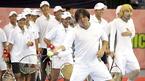 18일 올림픽 체조경기장에서 열린 비너스와 샤라포바의 원포인트 클리닉에 모 방송국의 프로그램을 촬영하기 위해 온 유재석 등 연예인들이 스트레칭을 하고 있다. /손용호 기자 spjj@osen.co.kr [Copyright ⓒ OSEN(www.osen.co.kr) 무단전