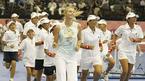 18일 올림픽 체조경기장에서 열린 테니스 스타 비너스와 샤라포바의 원포인트 클리닉에서 샤라포바가 참가 학생들에게 경기 전 스트레칭을 강조하며 함께 코트를 뛰고 있다. /손용호 기자 spjj@osen.co.kr [Copyright ⓒ OSEN(www.osen.co.kr