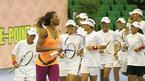18일 올림픽 체조경기장에서 열린 비너스 윌리엄스의 원포인트 클리닉에서 윌리엄스가 참가 학생들에게 경기 전 스트레칭이 중요하다며 코트를 돌고 있다. /손용호 기자 spjj@osen.co.kr [Copyright ⓒ OSEN(www.osen.co.kr) 무단전재 및 재