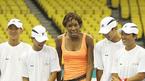 18일 올림픽 체조경기장에서 열린 테니스 스타 비너스 윌리엄스의 원포인트 클리닉에서 윌리엄스가 참가 학생들과 기념사진을 찍고 있다. /손용호 기자 spjj@osen.co.kr [Copyright ⓒ OSEN(www.osen.co.kr) 무단전재 및 재배포 금지]