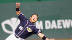 22일 광주구장에서 벌어진 기아 타이거즈와 삼성 라이온즈의 경기. 삼성 3회 초 공격, 1사 3루에서 심정수가 피하듯이 살짝 갖다댄 것이 우익수 앞에 떨어지는 안타가 되며 타점을 올리자 1루로 나가 멋쩍은 웃음을 짓고 있다. /광