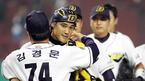 승리의 하이파이브 대신 선수들의 손을 꼭 쥐는 버릇이 있는 김경문 두산 감독은 28일 기아전 승리로 기적적인 2위를 확정짓고는 악수 대신 포옹을 했다. 그라운드 위에 늘어선 30여명의 선수들중 절반 넘게 김 감독의 포옹 세례