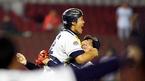 28일 기아 타이거즈와의 잠실 경기서 7-2로 이겨 이날 LG에 덜미를 잡힌 SK를 3위로 끌어내리며 플레이오프에 직행한 두산 베어스의 포수 홍성흔이 삼진으로 마지막 아웃카운트를 잡은 뒤 갖고 있던 볼을 관중석에 서비스하고 있