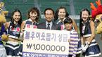 28일 문학구장에서 벌어진 SK 와이번스와 LG 트윈스의 시즌 최종전에 앞서 SK의 치어리더들이 올해 올스타전 치어리더 경연대회 1등 상금 100만원을 인천의 한 보육원에 기부하고 기념사진을 찍고 있다./인천=손용호 기자 spjj@osen.co