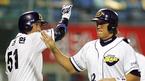28일 문학구장에서 벌어진 SK 와이번스와 LG 트윈스의 시즌 최종전 LG의 1회초 1사 후 박경수가 SK 선발 크루즈로부터 좌측 펜스를 넘어가는 선제 솔로홈런을 치고 들어오자 동료들이 장난기 섞인 동작으로 환영하고 있다./인천=손