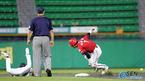 28일 두산 베어스와 기아 타이거즈의 잠실 경기 두산이 2-1로 앞서 있던 4회말 1사 3루서 전상렬이 투수 앞 스퀴즈 번트를 대고 1루로 뛰고 있다. 3루 주자 손시헌(오른쪽)이 홈을 밟아 스퀴즈에 성공하며 3-1을 만들었다./잠실= 주