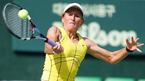 28일 서울 올림픽공원 테니스경기장에서 벌어진 2005 한솔코리아오픈 여자 단식 본선 1회전서 호주의 니콜 플랫이 한국의 김소정에게 가볍게 점프하며 스트로크를 넣고 있다. 플랫이 6-2, 2-6, 6-4로 승리했다./올림픽공원= 주지영