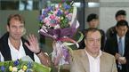한국 축구대표팀을 새로 이끌게 된 딕 아드보카트 감독(오른쪽)과 핌 베어벡 코치가 29일 오전 인천공항을통해 입국했다. 한국축구 재건의 임무를 부여 받은 '네덜란드 듀오'가 대한축구협회에서 준비한 꽃다발을 들고 환영에