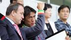 2일 서울 상암 월드컵경기장에서 벌어진 FC 서울과 인천 유나이티드의 경기를 관전하러 나온 아드보카트 신임 국가대표팀 감독과 홍명보 코치 및 통역 박일기 씨가 함께 웃으며 경기를 지켜보고 있다./상암=주지영 기자 jj0jj0@ose