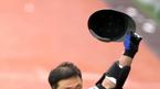 2일 문학구장에서 벌어진 SK 와이번스와 한화 이글스의 준PO 2차전 SK의 8회말 선두타자로 나온 박경완이 한화 구원투수 조성민으로부터 좌측 펜스를 넘어가는 솔로 홈런을 날린 뒤 헬멧을 벗어 팬들에게 인사하고 있다./인천=손