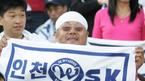 2일 문학구장에서 벌어진 SK 와이번스와 한화 이글스의 준PO 2차전서 나이 지긋한 노년 관객이 '인천 SK'라고 쓰인 수건을 흔들며 열렬히 응원하고 있다./인천=손용호 기자 spjj@osen.co.kr [Copyright ⓒ OSEN(www.osen.co.kr) 무단전재 및 재배