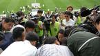 2일 서울 상암 월드컵경기장에서 벌어진 FC 서울과 인천 유나이티드의 경기가 끝난 뒤 한 관중이 홍명보 국가대표팀 코치 옆으로 다가와 핸드폰으로 자신과 홍 코치의 얼굴이 들어가도록 사진을 찍고 있다./상암=주지영 기자 jj0