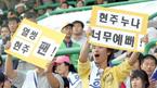 SK 와이번스와 한화 이글스의 준PO 2차전이 벌어진 2일 문학구장 SK 응원석에서 두 남성이 한 치어리더의 이름이 적힌 플래카드를 들고 응원을 하고 있다./인천=손용호 기자 spjj@osen.co.kr [Copyright ⓒ OSEN(www.osen.co.kr) 무단전재 및 재