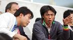 2일 서울 상암 월드컵경기장에서 벌어진 FC서울과 인천 유나이티드의 경기를 관전하고 있던 딕 아드보카트 신임 국가대표팀 감독이 경기가 거의 끝나갈 무렵 엄지를 들어 보이고 웃으며 이야기할 때 통역 박일기 씨는 진지한