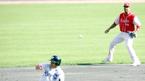 2일 문학구장에서 벌어진 SK 와이번스와 한화 이글스의 준PO 2차전 SK의 4회말 1사 1,2루서 김태균의 3유간 깊숙한 타구를 잡은 한화 유격수 브리또가 3루에 송구한 뒤 쳐다보고 있다. 그러나 공은 3루수 이범호가 잡을 수 없는 쪽으