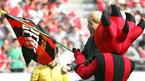 2일 서울 상암 월드컵경기장에서 벌어진 FC 서울과 인천 유나이티드의 경기를 관전하러 나온 딕 아드보카트 신임 국가대표팀 감독이 그라운드에 내려와 한웅수 FC 서울 단장으로부터 환영 꽃다발을 받은 뒤 관중들을 향해 손을