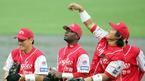 3일 문학구장에서 벌어진 SK 와이번스와 한화 이글스의 준PO 3차전은 한화가 SK에 5-3으로 역전승을 거두었다. 9회말 1사 1, 2루에서 박경완의 병살타로 경기를 마감한 한화의 브리또가 이날 결승타를 친 이도형의 환영을 받고 있다.