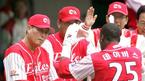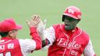 3일 문학구장에서 벌어진 SK 와이번스와 한화 이글스의 준PO 3차전 한화 5회초 1사 1루에서 데이비스가 우중간 담장을 넘어가는 역전 투런 홈런을 치고 들어오자 김인식 감독이 직접 나와 맞이하고 있다./인천=손용호기자spjj@osen.c