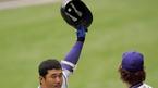 3일 문학구장에서 벌어진 SK 와이번스와 한화 이글스의 준PO 3차전. SK 6회말 공격, 2사 후 이호준이 한화 구원투수 최영필로부터 좌측 폴대를 맞히는 동점 솔로홈런을 치고 모자를 벗어 인사를 하고 있다. /인천=손용호 기자 spjj@ose