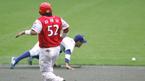 3일 문학구장에서 벌어진 SK 와이번스와 한화 이글스의 준PO 3차전.한화 7회초 공격, 2사 1, 2루에서 이도형의 빗맞은 타구에 유격수 김민재와 2루수 정경배가 몸을 날렸으나 김민재의 글러브에 맞고 튕겨나가 역전타로 연결됐다.
