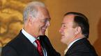 4일 저녁 서울 하얏트 호텔에서 열린 만찬에서 프란츠 베켄바워 독일월드컵 조직위원장과 아드보카트 대표팀 신임 감독이 반갑게 포옹하고 있다. 베켄바워는 2006 독일 월드컵 홍보차 본선 진출국들을 순회 방문하고 있다. /하얏