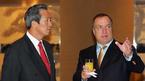 4일 저녁 하얏트 호텔에서 열린 만찬에서 정몽준 대한축구협회 회장과 아드보카트 신임 대표팀 감독이 담소를 하던 중 아드보카트 감독이 홍명보 코치를 가리키며 뭔가를 얘기하고 있다./하얏트호텔=주지영 기자 jj0jj0@osen.co.kr [