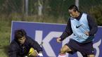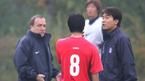 이란과의 평가전에 대비해 7일 오후 파주 NFC에 소집된 '아드보카트 1기' 태극전사들이 첫 훈련을 실시했다. 아드보카트 신임 감독이 6대6 미니 연습경기 도중 김두현을 불러 통역을 통해 이야기를 나누고 있다. 아드보카트 감독
