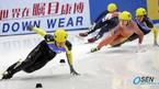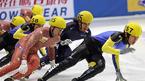 2005~2006 ISU쇼트트랙 서울 월드컵대회가 7일 오후 서울 목동 종합운동장 내 실내아이스링크에서 개막됐다. 1500M 남자 준결승서 중국의 노장 리자준이 넘어지며 결승 진출에 실패하고 있다. 한국의 이호석(오른쪽)이 1위로 준결승