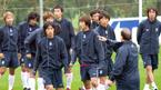 이란과의 평가전에 대비해 7일 오후 파주 NFC에 소집된 '아드보카트 1기' 태극전사들이 첫 훈련을 실시했다. 최진철 박지성 안정환 등 2002 한일월드컵 멤버들이 한 조가 돼 홍명보 코치와 함께 미니 게임으로 몸을 풀고 있다./파