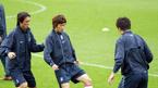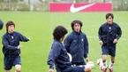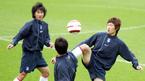이란과의 평가전에 대비해 7일 오후 파주 NFC에 소집된 '아드보카트 1기' 태극전사들이 첫 훈련을 실시했다. 아드보카트 신임 감독이 전날 밤 일본의 비셀 고베와 친선 경기를 치른 FC 서울의 박주영(왼쪽)과 김동진에게는 회복훈