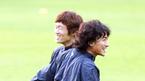 이란과의 평가전에 대비해 7일 오후 파주 NFC에 소집된 '아드보카트 1기' 태극전사들이 첫 훈련을 실시했다. 미니게임 도중 박지성(왼쪽)과 안정환이 환한 표정으로 웃으며 서로 교차하고 있다./파주=손용호 기자 spjj@osen.co.kr [Copyr