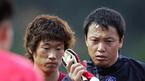 아드보카트 신임 감독이 이끄는 한국 축구대표팀이 소집 이틀째인 8일 오전에 이어 오후에도 훈련을 소화했다. 오후 훈련 중 박주영이 왼 발목에 감고 있던 붕대를 풀기 위해 축구화를 벗고 있다./파주=주지영 기자 jj0jj0@osen.co.k