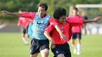 아드보카트 신임 감독이 이끄는 한국 축구대표팀이 소집 이틀째인 8일 오전에 이어 오후에도 훈련을 소화했다. 오후 훈련서 실시한 연습게임 도중 박주영과 김영철이 헤딩을 위해 점프했으나 낙하 지점을 못맞춰 공이 김영철